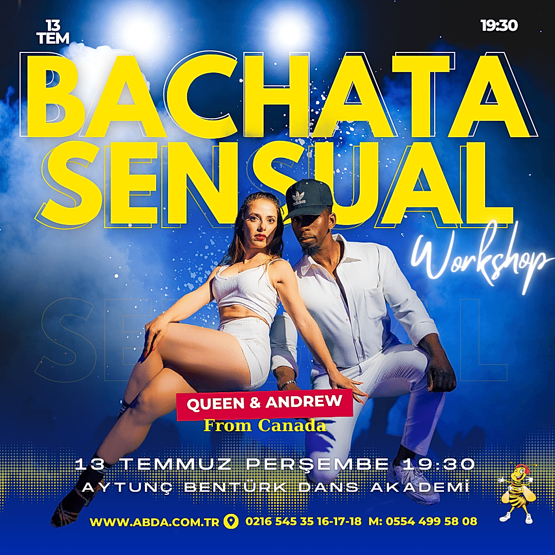 Canada'dan Queen & Andrew 13 Temmuz Perşembe saat 19:30 da Bachata Sensual Workshop ile farklı ve yeni kombinasyonlarını sizlerle paylaşmaya geliyor.